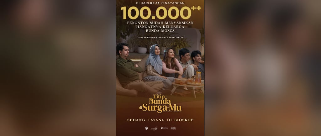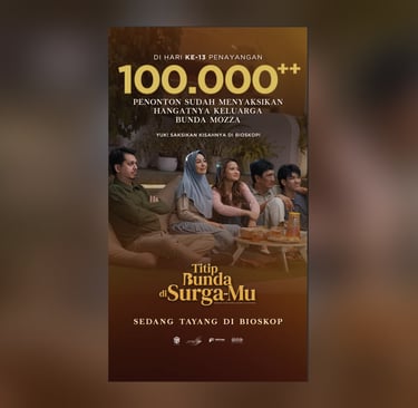 Film Titip Bunda di Surga-Mu terus menarik perhatian penonton dan kini telah menembus 100 ribu penonton di bioskop seluruh Indonesia. Dibintangi Meriam Bellina, Acha Septriasa, dan Kevin Julio, film ini mengangkat kisah haru tentang konflik keluarga, pengorbanan seorang ibu, serta penyesalan anak-anak yang baru menyadari arti kasih sayang ketika waktu hampir terlambat.