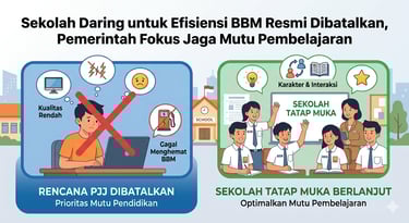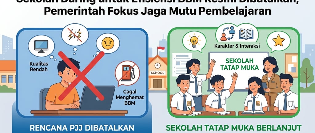 Pemerintah resmi membatalkan rencana sekolah daring sebagai upaya penghematan BBM. Risiko penurunan kualitas belajar dan kesenjangan akses jadi pertimbangan utama.